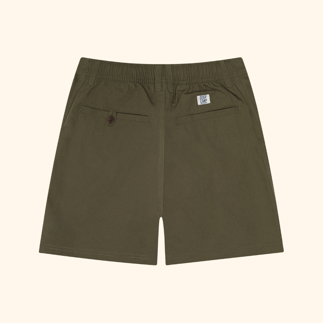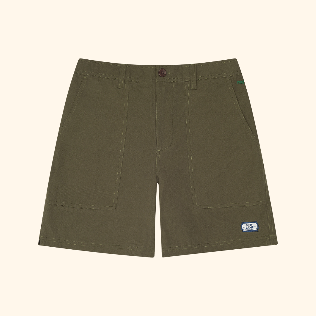 Built to be worn hard and daily, the Pathway Canvas Short is our most requested item yet. We’re proud to offer a durable, go-to piece for your everyday rotation. Crafted from 10oz cotton canvas with infused spandex for a comfortable, flexible fit, this short features a 18.5" outseam, an elastic waistband, front button closure, front pockets, and a back welt pocket. Finished with our Surf Camp outdoor division branding on the bottom left, it's designed for both style and function.