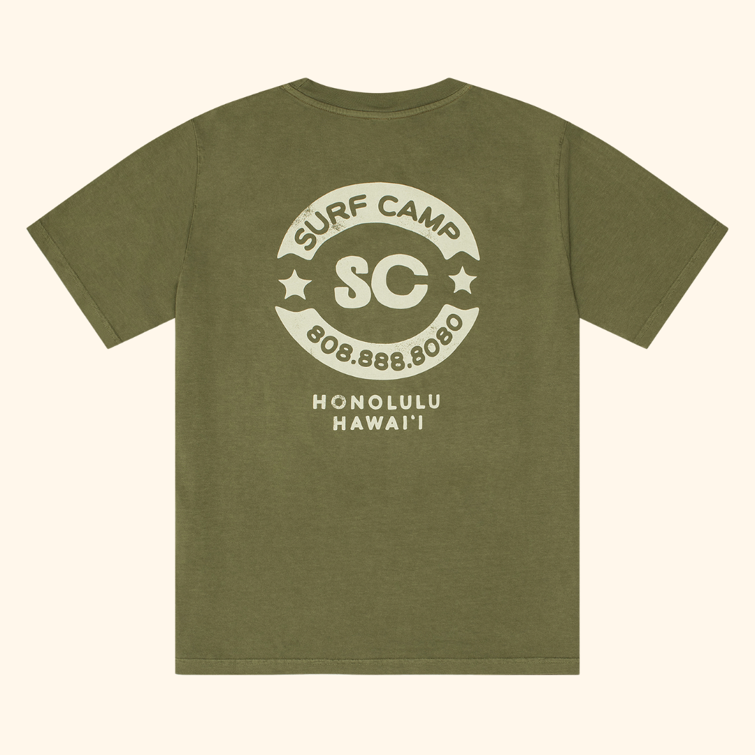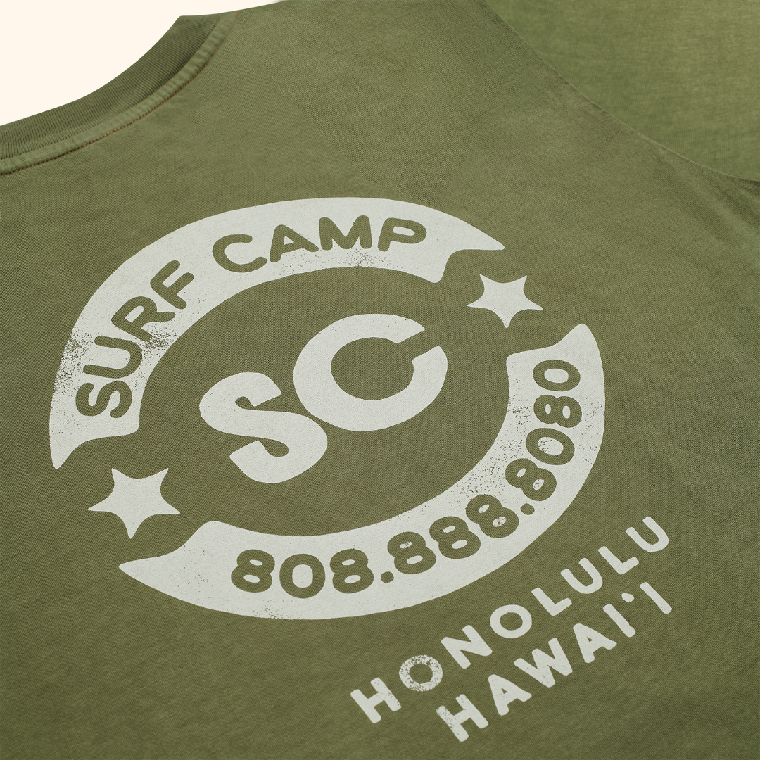 The Revolve Tee — built with a vintage feel from the start. Garment washed and dyed for a worn-in look and soft finish. Made from 100% recycled cotton at a family-owned, fair trade certified factory in India and hand screen-printed in Hawai‘i with 100% water-based ink.